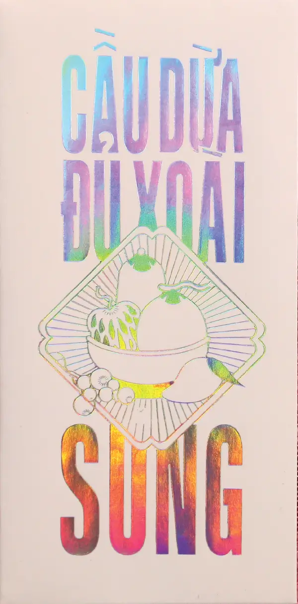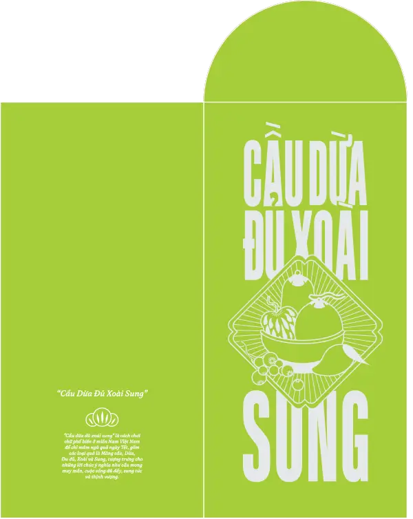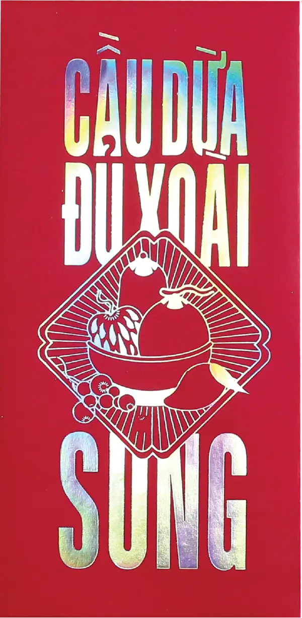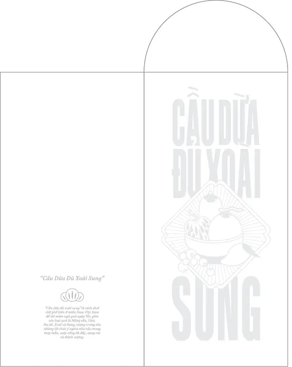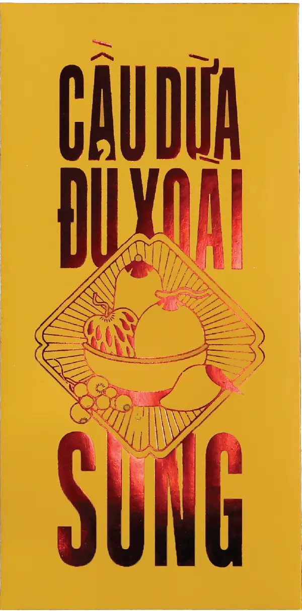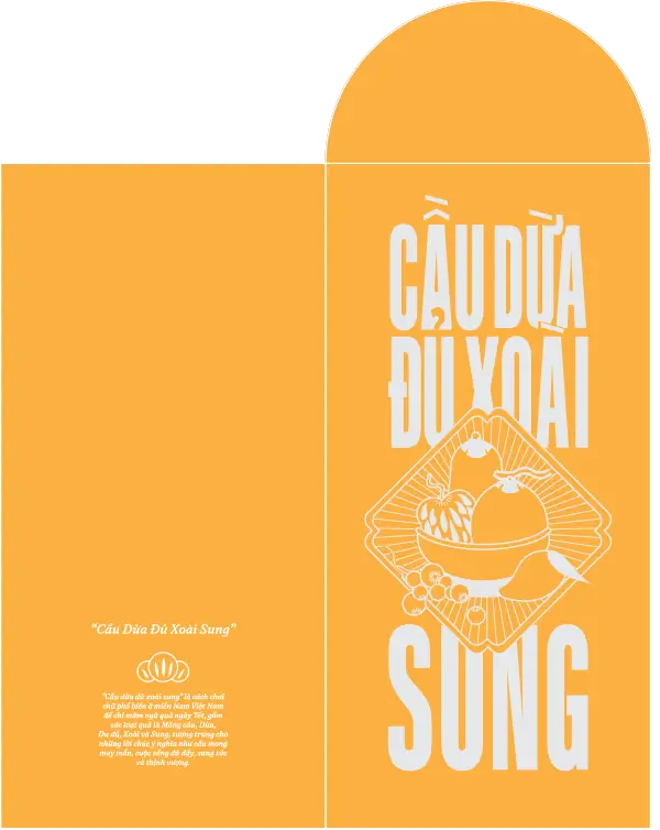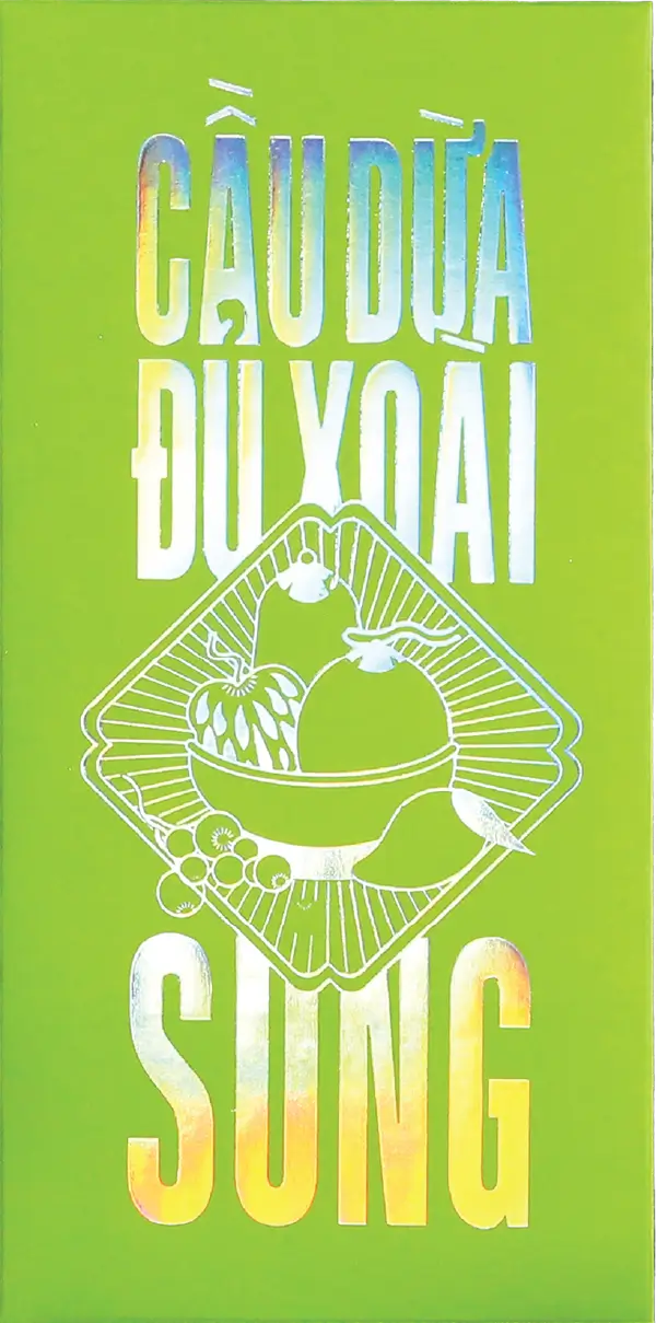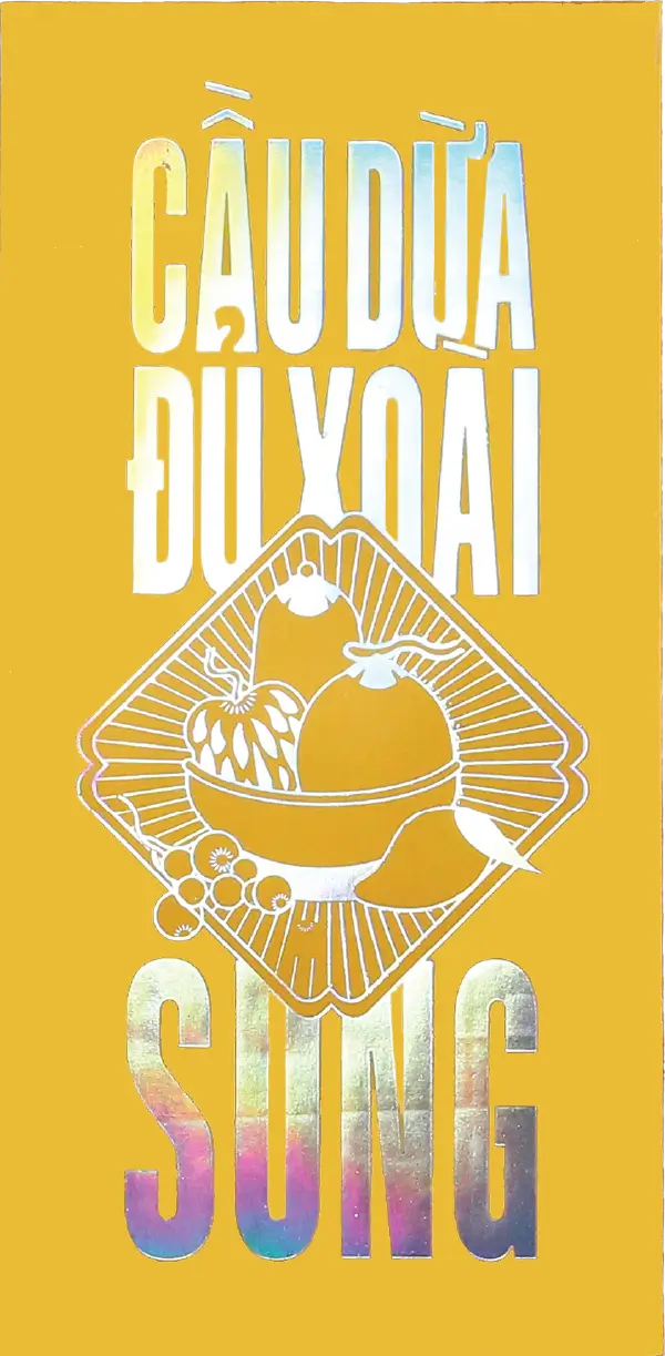 “Cầu Sung Dừa Đủ Xoài” is a popular Southern Vietnamese wordplay referring to the traditional five-fruit tray displayed during the Lunar New Year (Tết). The tray typically includes custard apple (mãng cầu), coconut (dừa), papaya (đu đủ), mango (xoài), and fig (sung). Together, these fruits embody heartfelt wishes for good fortune, abundance, prosperity, and a fulfilling life.