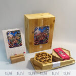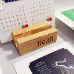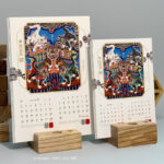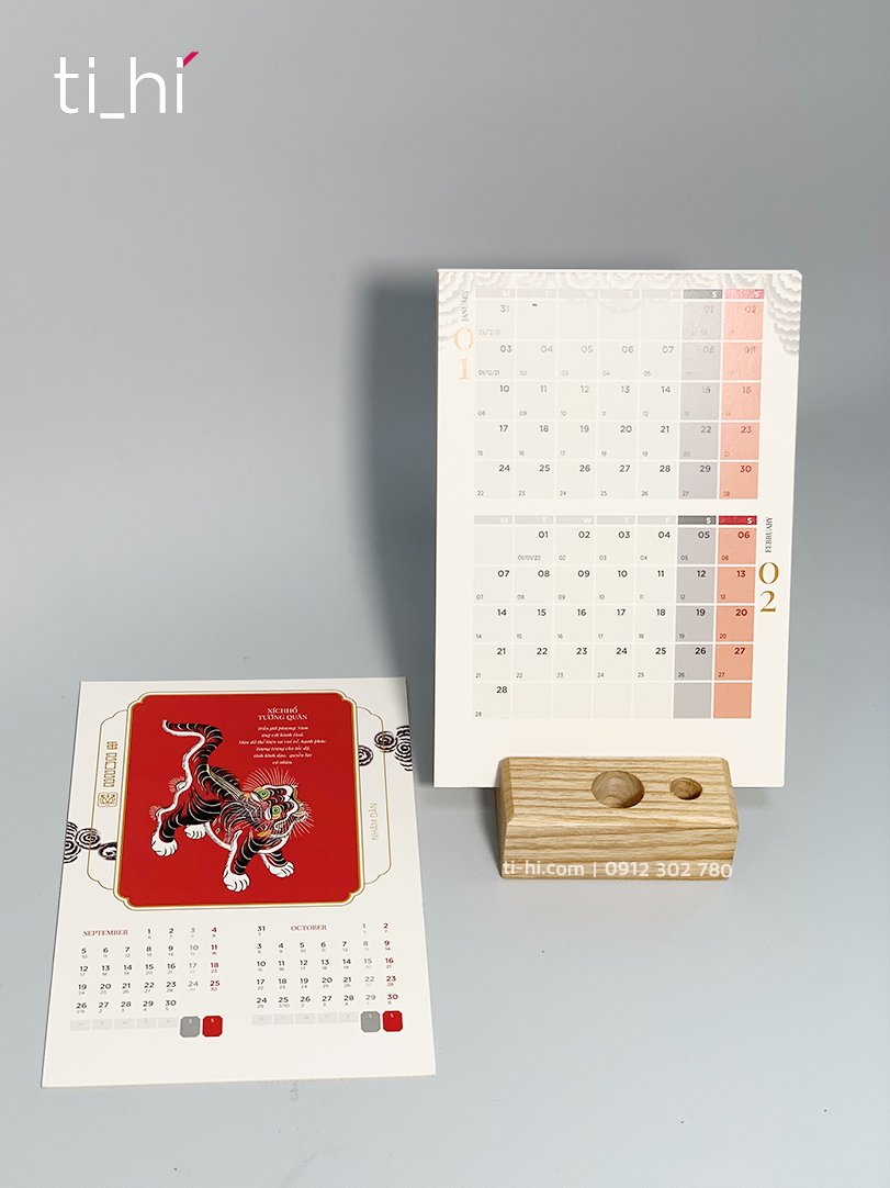 Bộ 06 tờ, in 2 mặt – mặt sau có phần để ghi chú: Lịch giấy Ivory cứng đẹp + Đế lịch bằng gỗ 10x10cm hoặc 8x8cm do quý khách lựa chọn.